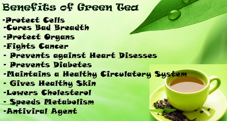 Green tea for your good health Protect cells Cures bad breath Protect organs Fights cancer Prevents against heart diseases Gives...